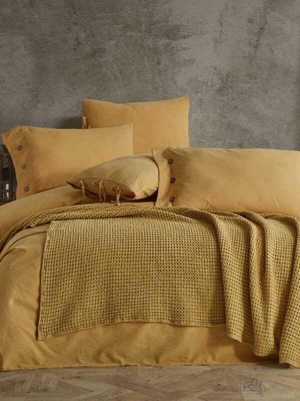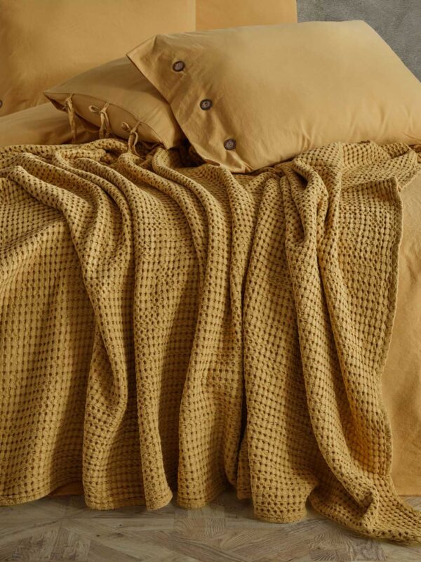 Tokyo Waffled Bed Spread Mustard
